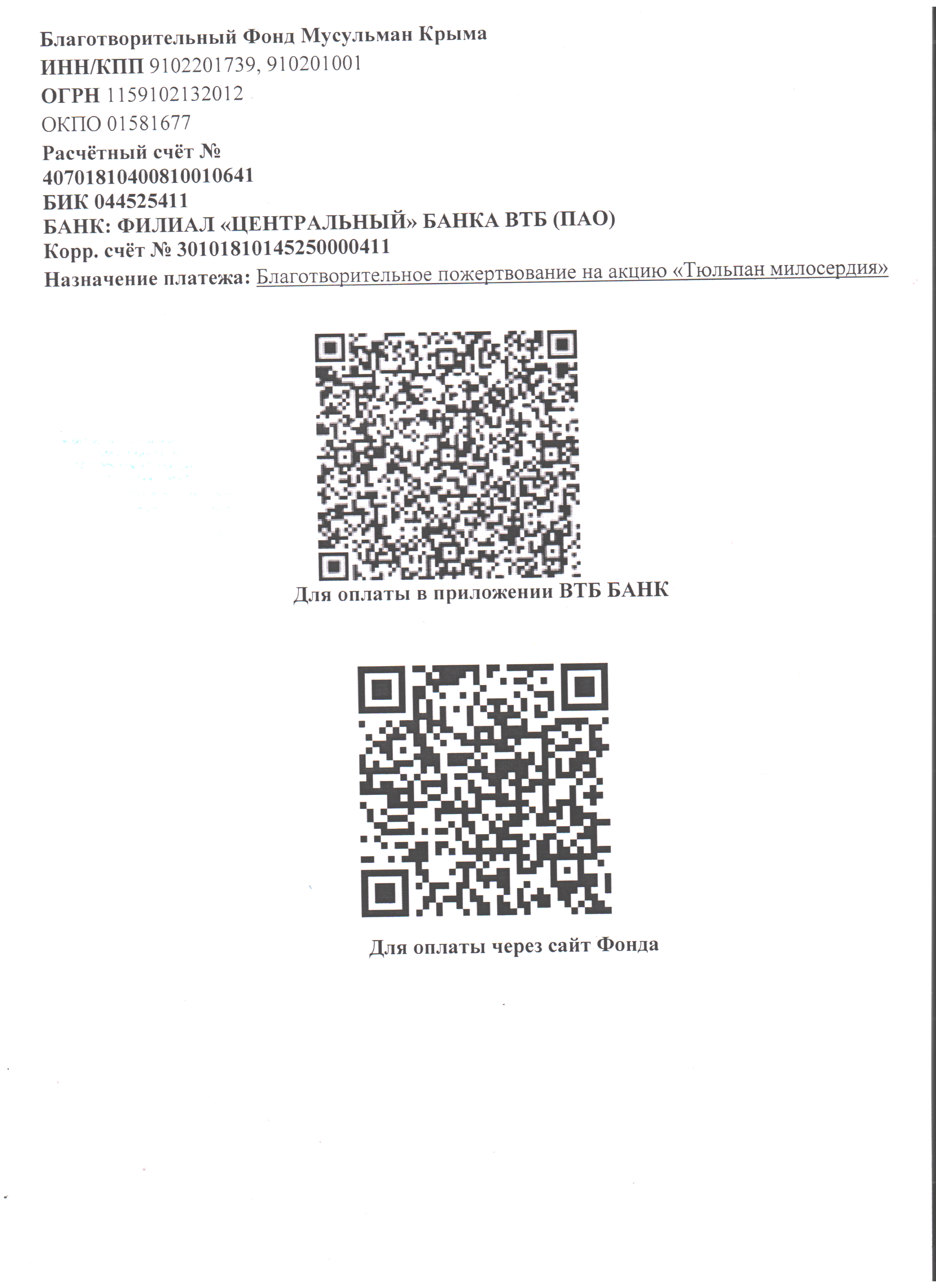 Ежегодная Всекрымская благотворительная акция «Тюльпан милосердия» – «Мерхаметлик лялеси» проходит с 28 октября 2025 года по 30 апреля 2026 года, с целью оказания помощи семьям тяжелобольных детей, обратившихся за помощью в Духовное управление мусульман Республики Крым и города Севастополь (Таврический Муфтият), а также для поддержки семей участников СВО.