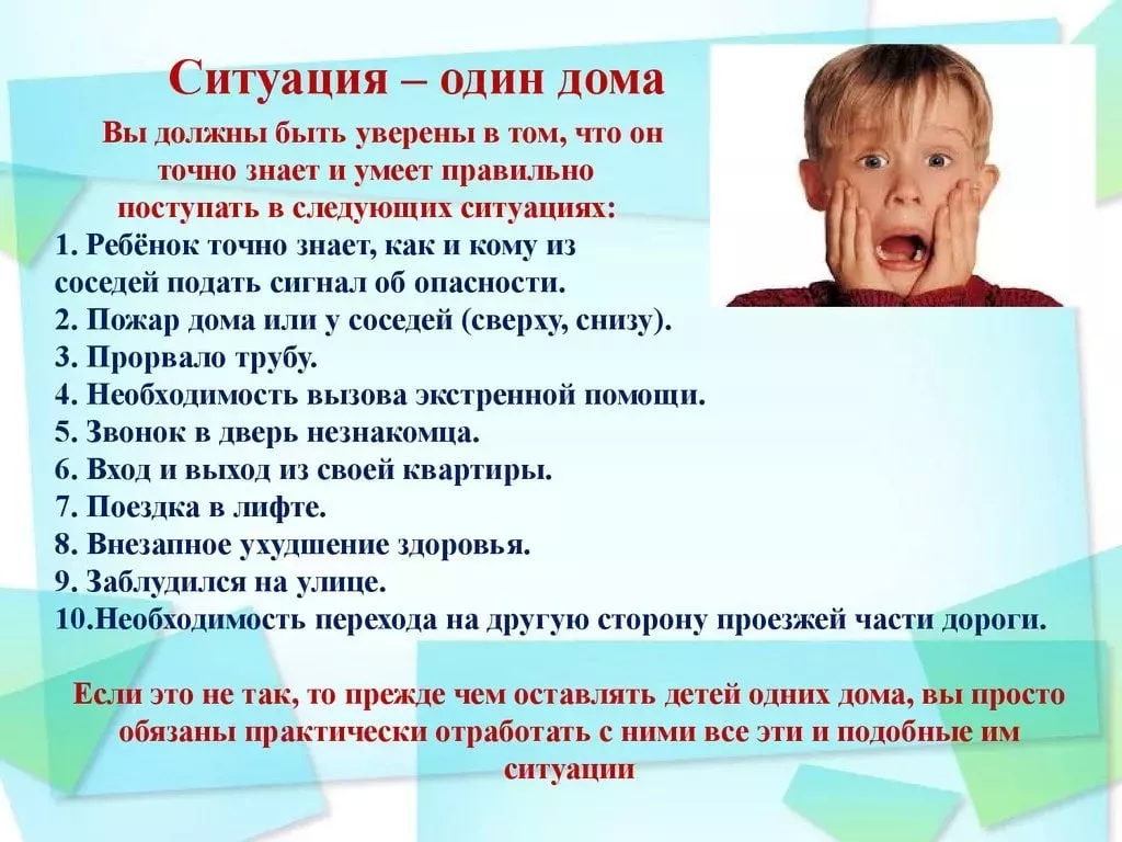 Уважаемые родители! Бывают случаи, когда Вы вынуждены оставить ребенка в квартире, доме одного. Вы уверены, что ребенок справится с бытовыми проблемами и нестандартными ситуациями? Просим ознакомиться с памяткой "Один дома"